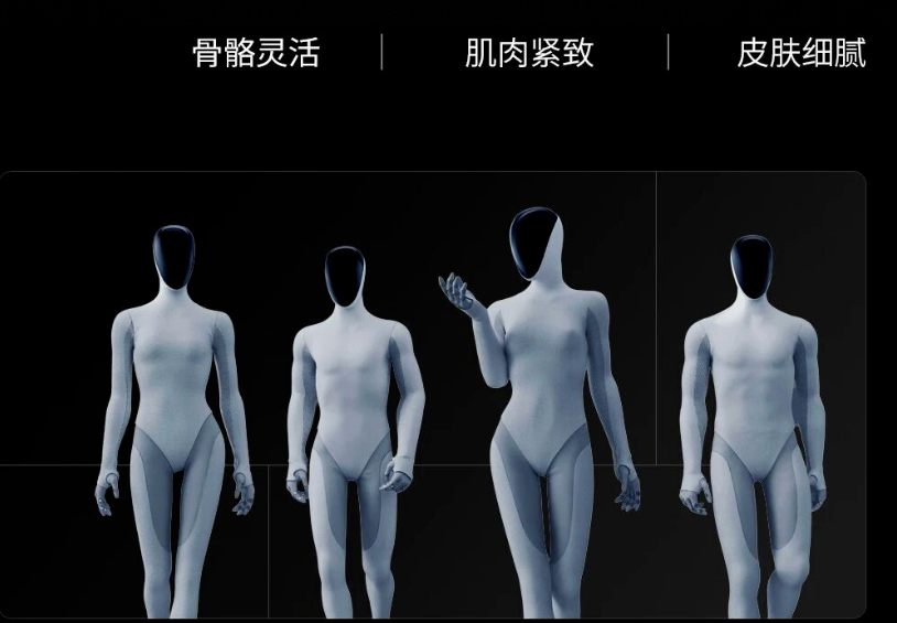 极致仿生的身体结构:这款机器人并非简单的机械骨架,它设计了仿人的脊椎,并覆盖有仿生肌肉和全包覆的柔性皮肤。这种拟人化设计让其整体轮廓和运动姿态都非常接近真人。